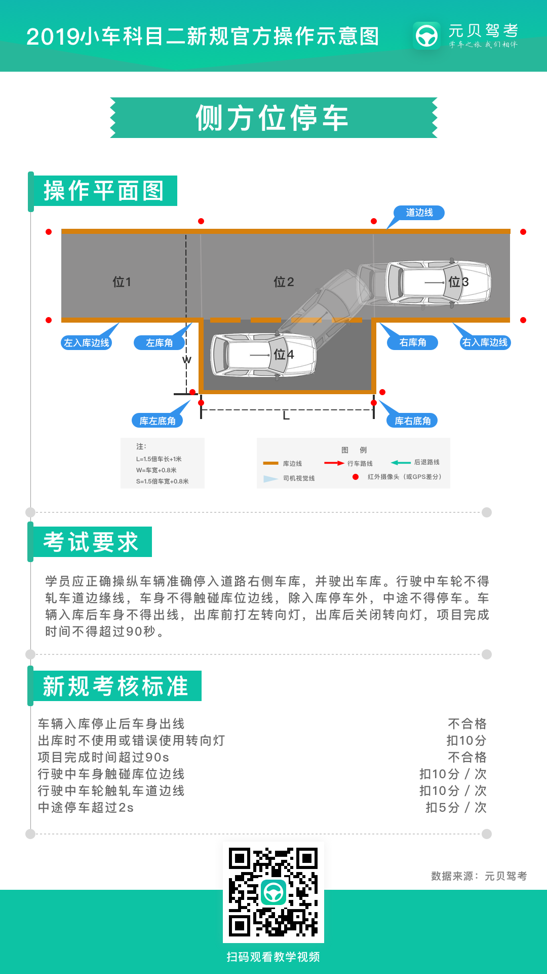 关键操作:停车时注意车轮与前后、左右边线的距离;停车拉手刹,起步最后松手刹。
